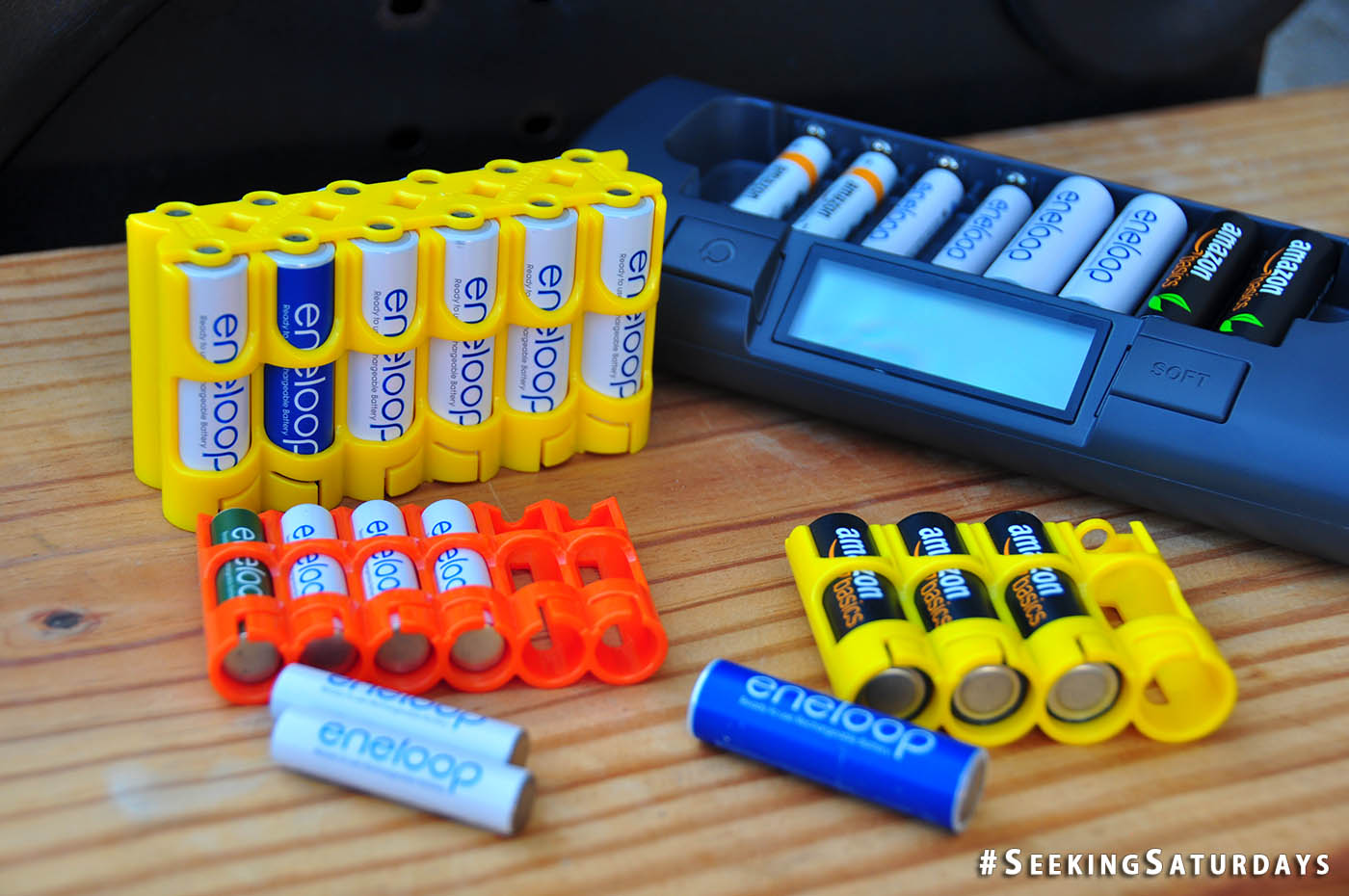Since we now ONLY use rechargeable batteries in our everyday life, if any run low, we stick them in the PowerEx AA & AAA Smart Charger to juice up and grab a fresh set that’s waiting. We always have a bank of charged batteries and never have to run out and buy them. Make sure your smart charger can charge each battery independently.